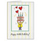 Cette carte d'anniversaire a un joli dessin animé tenant un gâteau montrant "100" et rempli de coeurs sur le dessus. À l’occasion du 100e anniversaire de quelqu’un, envoyez cette carte pour lui transmettre vos souhaits. Parfait pour envoyer à un parent ou à un ami pour terminer leur 100e anniversaire.