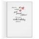 Deze verjaardagskaart heeft een schattige cartoon met een taart met "100" en vol harten. Op iemands 100e verjaardag, verzend deze kaart om uw wensen aan hen uit te breiden. Perfect om naar een familielid of vriend te verzenden om hun 100e verjaardag te voltooien.