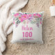 Elegant ontwerp voor een 100ste verjaardagsfeestje met een roze "100 and fabulous" en een scriptnaam verfraaid door vrouwelijke waterverf bloemen op een witte achtergrond. Pas leeftijd, tekst, naam en achtergrondkleur aan.