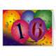 Grote kleurrijke ballonnen met confetti en regenboogkleurige achtergrond met 16 in de ballonnen. Het perfecte ontwerp voor je 16e verjaardagsfeestje is goed voor je postzendingen.
