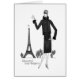 Deze illustratie komt uit een tijdschrift uit 1927 over de mode van vrouwen. Hij heeft een mooie decovrouw in Franse stijl uit 20, die voor de Eiffeltoren staat. U kunt de kaart aanpassen door de achtergrondkleur evenals de binnentekst te veranderen!