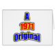 Een origineel uit 1971, met felrode, blauwe en gele kleuren, is dit ontwerp perfect voor diegenen die graag in een menigte opstaan. Zeg op een speciale manier gelukkige verjaardag met dit originele geboortejaar ontwerp. Pas het aan om het nog origineel, jouw naam, nick naam of iets anders te maken die het meer u maken.