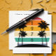 .: 1976 .: Retro Stripe Zonsondergang met palmboomsilhouetten .: Coördinerende beschikbare design .: Andere beschikbare jaren