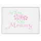 in pastelroze tekst en bloemen 1st Time Mammie kaarten, T-shirts, mokken, knoppen en andere nieuwe mama spullen, een geweldige manier om iedereen te laten weten dat je moeder wordt!
