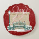 Ronde gooi kussen met Kerstvreugde als thema. Mooie besneeuwde parkscène geïllustreerd met vredige parkbank en kleine vogels. Geniet van het vieren van Kerstmis met familie en vrienden! — L Diane Johnson
