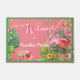 (achtergrondkleur en naamtekst) het Welkome mat van Flamingo. koraal, zongeel en oerwoud groene kleuren overheersen in een paradijs van bladeren en bloemen. Tropische groeten verwelkomen je gasten. Dit is een spiegelversie van het originele Paradise Flamingo met verschillende plaatsingen en achtergrondkleur van koraalroze.
