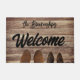 Welkom uw gasten met cowboylaarzen op een rustieke houten achtergrond. Pas de tekst aan, verwijder tekst of bewerk tekst met het ontwerpgereedschap om een lettertypestijl, -grootte en -kleur te selecteren die u verkiest. Een geweldig housewarming of huwelijkscadeau idee. U kunt dit ontwerp, waar het past, ook toevoegen aan een van de producten die worden weergegeven in de schuifbalk op deze pagina, zoals de dienblad of badmat.