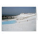 Een ongelooflijke scène op de Hierapolis in Pamukkale, Turkije. Ondanks hoe het eruit ziet, is dat geen sneeuw! Het is zo heet, zo niet heter dan Georgia Asphalt. Het is zomer, kinderen lopen een hete travertijnse heuvel af.