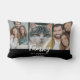 Modern 3 fotocollage lumbaal kussen met familienaam en jaar. Trendy, leuke aandenken. Gemakkelijk om de tekst te veranderen.