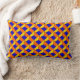 Een doortastend 3D-ontwerp in blauw geel en oranje maakt een unieke kussen. Werkt op zowel maten als vormen.