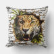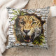 A stunning 3D wall break throw pillow featuring a realistic leopard emerging through cracked concrete with tropical foliage behind. The hyper-detailed artwork creates an illusion of depth and movement, perfect for animal lovers and safari-themed decor.