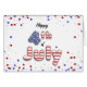 Illustration 3D moderne, tendance et élégante avec des étoiles et des rayures présentant des ballons en papier 3D Happy 4 juillet aux couleurs nationales du drapeau américain, avec des confettis rayés d'étoiles.