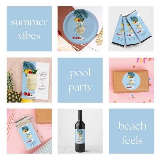 Tropical Blue Pina Colada Cocktail 50th Birthday Conçu par Gloria Shen