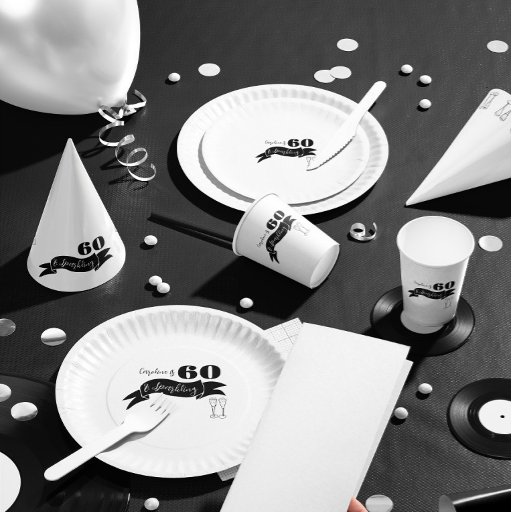 60 en sprankelende hand getekend zwart en wit papieren bordje