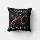 80 dus wat Funny Black Pink Script 80th Birthday Sierkussen. Zwart en elegant 80ste verjaardagskussens met een grappig, positief en motivatie citaat 80 Dus wat? De achtergrond is zwart. Pas de kussen aan met een naam en verander ook al tekst als u wilt. Geweldig verjaardagscadeau voor een vrouw of een man die 80 jaar viert en een gevoel van humor heeft.