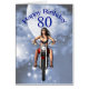 Une belle fille à moto à travers les étoiles dans le ciel. Une carte d'anniversaire très différente pour l'homme qui aime la moto !