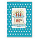 Faites un joli anniversaire possible. Célébrez avec quelqu'un à 80e anniversaire avec cette carte. Voici un gâteau d’anniversaire sur un arrière - plan à pointillés blanc et bleu, illuminé de 80 bougies.