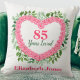 Admirez une dame spéciale à son 85e anniversaire avec ce magnifique coussin Amoureux 85 ans. Personnalisez avec son nom ou un autre message. Parfait cadeau de 85ème anniversaire pour la femme qui a tout!