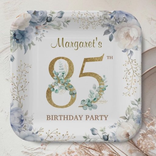 85th Birthday Elegant Gold & Dusty Blue PeonyConçu par H-Art Studio Design