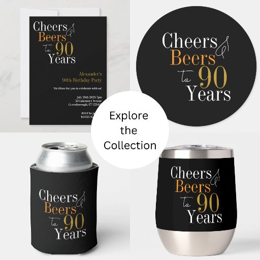90th Birthday Party Cheers and Beers Black GoldConçu par Only The Moon