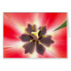 Photographie de macro ou closeup d'une fleur de tulipe montrant des étamines et des styles entourés de pétales colorés