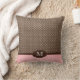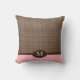 Ce coussin 20x20 chic élégant carré très grand a un motif rose et brun chocolat de à petits pois au dessus avec un motif rose mou de rayures séparé par un insigne facilement personnalisé de monogramme. Le postérieur a le motif de point rose et brun de polka.