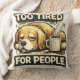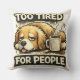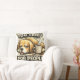 A pillow with a dog print and a phrase that we as humans and animals always live by.