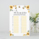 Combineer dit baby shower spel met bijpassende uitnodigingen, decor en gunsten om het perfecte feest te voltooien! Geniet van uw gasten met onze A-Z Baby shower Game, de perfecte aanvulling op elk baby shower feest! Dit boeiende en leerzame spel daagt gasten uit om te denken aan baby-gerelateerde items die beginnen met elke letter van het alfabet. Van "A" voor Applesauce tot "Z" voor Zippered Sleepers, dit spel laat iedereen lachen en deelt zijn favoriete baby-benodigdheden. Het is een fantastische ijsbreker en een leuke manier om vrienden en familie bij elkaar te brengen terwijl ze de aanstaande moeder en haar kleintje vieren. Met charmante design met bijenthema's zal dit spel zeker creëer-buzz zijn en uw baby shower een gedenkwaardige gebeurtenis maken.