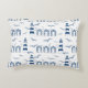 Prachtig geïllustreerde strandhutten en vuurtorens met patroon gooien kussen. Blauw strandlandschap, compleet met meeuwen, op een witte achtergrond. Perfect voor het strandhuis, modern kusthuis of voor elk nautisch themagebied.