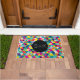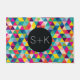 Welkom gasten bij je thuis met dit gepersonaliseerde monogram tapijt met een helder, gelukkig en zeer kleurrijk patroon van regenboogdriehoeken. Pas het zwart-wit en het tekstmonogram aan met uw eigen initialen voor een gepersonaliseerde voordeur zullen uw vrienden en buren genieten van het zien wanneer zij uw huis binnenkomen.
