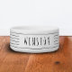 Aangepast zwart-wit, modern, minimale boerenstijl, dunne, dunne streep voeder voor gezelschapsdieren of waterkom met uw katten- of hondennaam op de zijkant gedrukt. Gebruik de geavanceerde redacteur van de sjabloon om doopvont, achtergrond of stripe kleuren te veranderen om uw decor of favoriete kleuren aan te passen.
