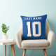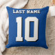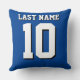 De naam, het aantal en de dalingsschaduw zijn klantgericht zodat kunt u een sportief, decoratief en nuttig maken werpen kussen uniek en aanpasbaar aan uw favoriete sportteamkleuren of kamerdecor. Blauwe achtergrond.