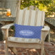 De perfecte gepersonaliseerde gooienkussens voor uw boot of vakantiestrandhuis zijn voorzien van blauwe ankerpatroonachtergrond met ovaal van middelste tekst om uw bootnaam toe te voegen.