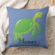 Gepersonaliseerde groene zee schildpad in blauw zee kussen. Tekst, lettertype, lettergrootte, kleur en plaatsing zijn volledig aanpasbaar.