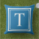 Aangepaste Initiaal kobalt Blue Square Monogram Buitenkussen
