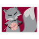 Schudvos, schattige vossen met kogel van garen en breinaalden, t-shirts, multomappen voor patroon of voor kraftwerk, van notitieboeken, van sleutelhangers, van stickers, van cadeaubonnen en van brei- of haakwerk, voor van brei- of garen. Fox houdt een lichtroze bol van garen en heeft grijze breinnaalden met kogeltjes.