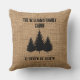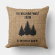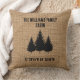 Gepersonaliseerde kussen met boeidruk en pijnbomen met coördinaten.