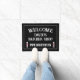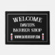 Custom kapper winkel deurmat met rode en blauwe kapper paal teken. Personaliseer met uw eigen bedrijfs- / bedrijfsnaam. Zwart-wit deurmat.
