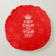Aangepaste KEEP CALM EN Jouw tekst op rood Rond Kussen