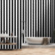 Een minimalistisch klassiek medium stripe patroon in zwart en wit. Creëer uw eigen behang door de kleuren te veranderen om uw decor aan te passen. Pas zowel de zwarte als witte kleuren in de digitale vectorafbeelding aan. Kies trendy kleuren voor uw moderne interieur. Controleer in deze winkel of er andere strippatroonopties zijn.