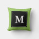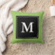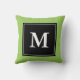 Aangepaste monogram blokletter werpt kussen. Monogrammed decoratiekussen voor sofa of slaapkamer. dubbelzijdig ontwerp met elegante typografie. A B C D E F G H I J K L M P Q R S U V W X Y Z. blockletters. randkleur is groen. Chic home decor.