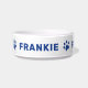 Aangepaste naam met blauwe verfafdrukken voerbakje