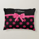 Aangepaste naam ophef roze glitter polka stips bow accent kussen