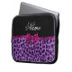 Aangepaste naam paarse leopard afdrukroze boog laptop sleeve
