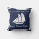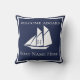 Aangepaste Nautische Witte Marine Blauwe Zeilboot Outdoor Kussen Ontwerp door Sandy Closs