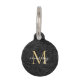 Custom Pet Name Black Botanical Gold Script Pet ID tag met een monogram en scriptnaam.