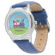 Dit ontwerp is voorzien van een stoomtrein en wordt geleverd met een verscheidenheid aan bandkleuren. U kunt het horloge ook personaliseren met de naam van een kind. Stuur me een bericht met eventuele vragen.