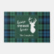 Schattigee thuis zoete kerst deur mat kunt u gemakkelijk aanpassen door te klikken op de "Personaliseren" knop, Met herten silhouet en clan Campbell tartan in groen, en blauw check. Perfect om het huis te dekken met uw traditionele kleuren op tijd voor de feestdagen. Maakt een geweldig housewarming cadeau