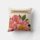 Dit eenvoudige en moderne roze bloemenboeket gooi kussen met een kraftlint detail heeft aanpasbare tekst en maakt een geweldig cadeau voor iedereen die van bloemen houdt.