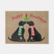 Gepersonaliseerde feestelijke kerstmis zwarte labs vakantie honden kussen onder de maretak! Leuke vakantie deurmat voor zwarte lab liefhebbers!